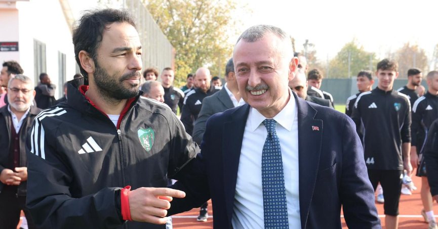 Kocaeli Büyükşehir Belediye Başkanı Tahir Büyükakın bugün yeşil siyahlıların antrenmanını ziyaret etti ve takıma tatlı ikram etti.