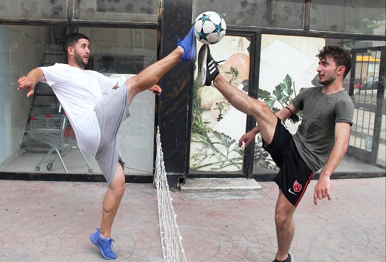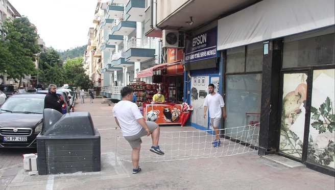 Karabaş Mahallesi Asım Efendi Sokak’ta yer alan Emin Market’in acar işletmecisi İsmail Likos ve bölgenin gençleri ayak tenisi oynayarak bol bol ter atıyor. İsmail Likos kendi imkanları ile kurduğu file ve kireçle çizdiği çizgilerle ayak tenisi alanı oluşturdu. Gündüz saatlerinde ayak tenisi oynamak isteyen gençler sıkı bir rekabet içine girerken, bölgelerinde spor alanı olmamasından ötürü de sitem ediyor.