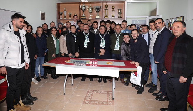 Kartepe Suadiye Spor Kulübü’nü ziyaret ederek sporcularla bir araya gelen İzmit Belediye Başkanı Av. Fatma Kaplan Hürriyet, geçtiğimiz aylarda kalp krizi geçiren Kulüp Başkanı Serbülent Dursun Sandıkçıoğlu'na geçmiş olsun dileklerini iletti
