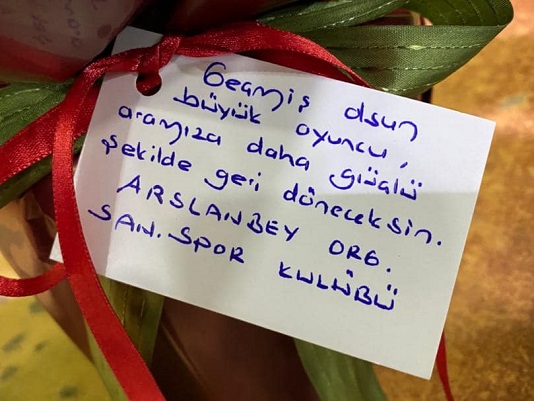 Arslanbey Organize Sanayi Kulübü futbolcu için bu anlamlı çiçeği hediye etti.
