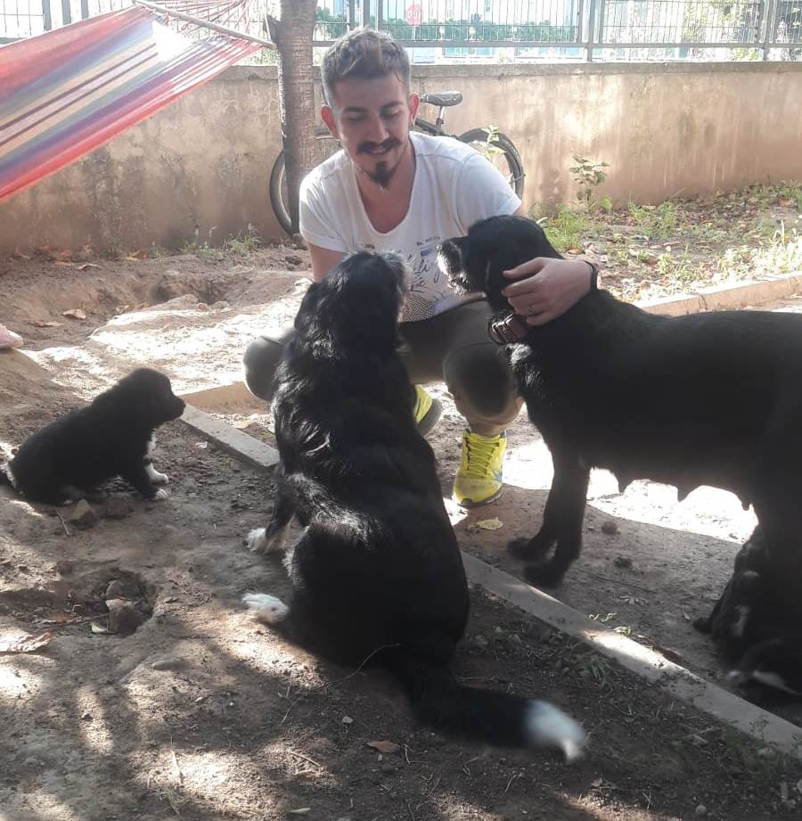 Hayvan barınaklarını sık sık ziyaret eden Eray, sokak hayvanlarını karınlarını doyuruyor.