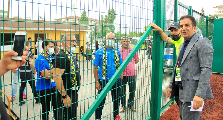 Karamursel Belediye Başkanı Mustafa Yıldırım ve Kırkpınar Başpehlıvanı Ahmet Taşcı maç öncesi Karamürselspor Teknik Sorumlusu Cem Baki ile sohbet etti.