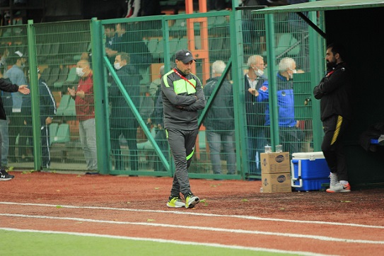 Karamürselspor Teknik Direktörü Cem Baki gergin göründü.