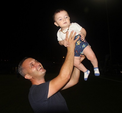 Başkan Kocaman, bir birinden sevimli iki bebekle kupa töreni öncesinde yakından ilgilendi.