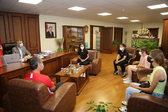 U-17 Kadın Milli Futbol Takımı’nın 2-6 Temmuz’da İstanbul’da yapacağı kampa davet edilen Kocaeli Kadın Futbol Takımı’nın futbolcuları, Gölcük Barbaros Hayrettin Lisesi öğrencileri, Reyhan Üstün, Cemre Ustaoğlu ve Cansu Kara, Teknik Direktör Hasan Alemdar ile birlikte Gölcük Belediye Başkanı Av. Ali Yıldırım Sezer’i makamında ziyaret etti.