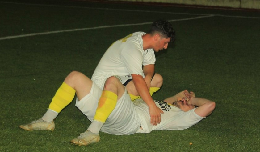 Gölcük Gençlerbirliği futbolcuları maçın ardından kendilerini yere bıraktı.
