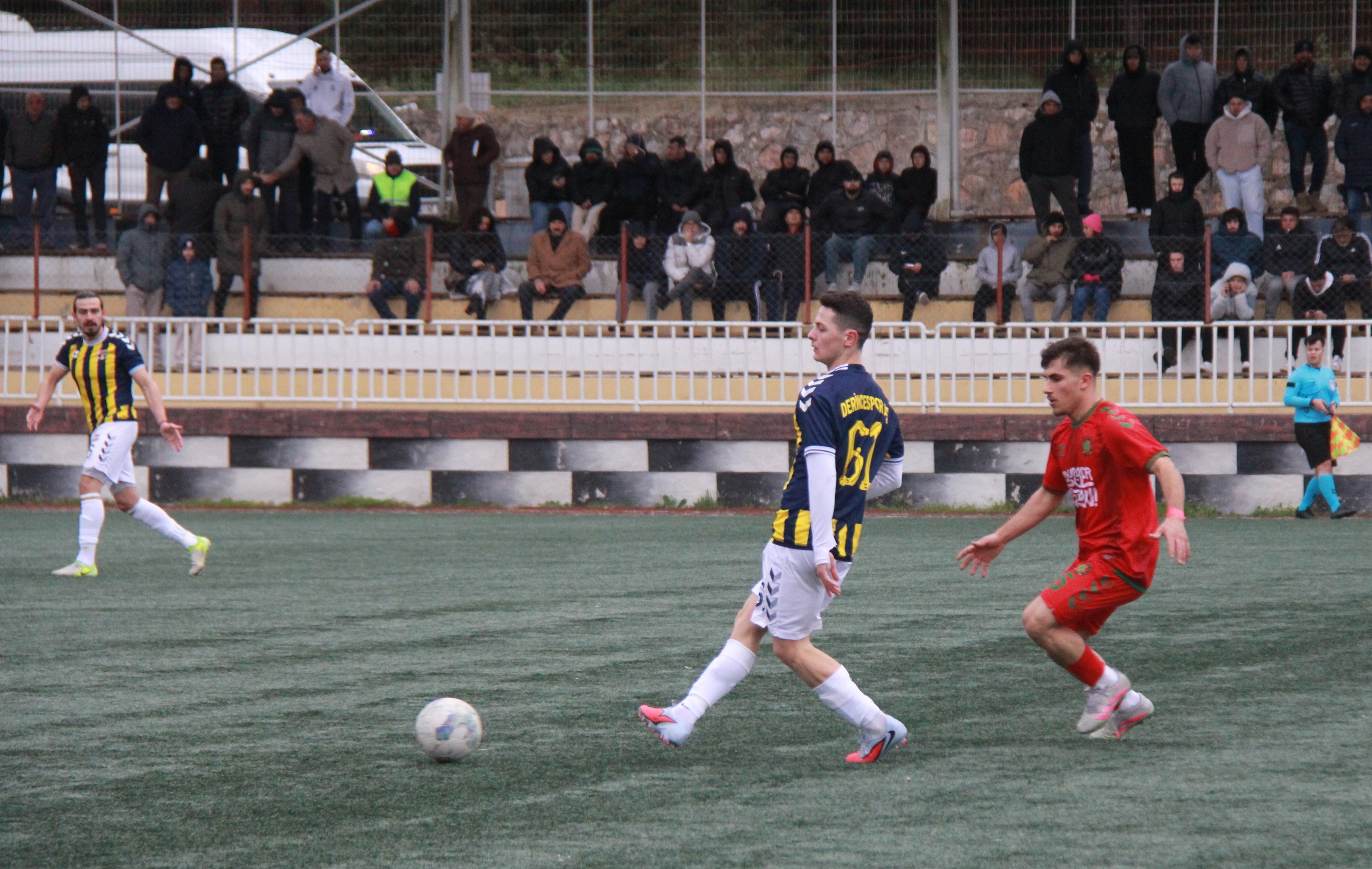 Derince Stadı’nda oynanan maçın ilk yarısında Derince’nin pozisyonları vardı, Turgutspor ise rakibini genel olarak karşılaşamayı tercih etti. 4. dakikada sağdan yapılan ortada Haydar topa dokundu ve Turgutspor kalecisi Berke iki hamlede gole izin vermedi. 24’te Ogün’ün pasında Miraç’ın vuruşunda top direkten döndü.