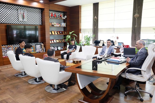 Okul Müdürü Halim Bayar ile birlikte öğrenciler Hüseyin Erdemir, Fehim Erdemir, ve Yunus Halis Çelik’le sohbet eden Başkan Söğüt, “Ülkemizde olduğu gibi ilçemizde de yeni sayılabilecek bir spor dalında gerçekten bizleri en iyi şekilde temsil ettiniz ve ilçemize gurur yaşattınız.
