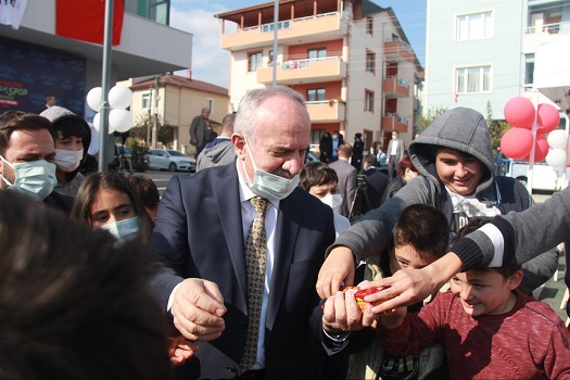 Derince Belediye Başkanı Zeki Aygün çocuklara bir torba dolusu çikolata dağıttı.
