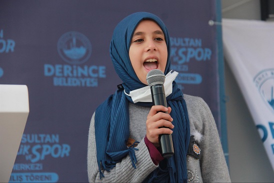 Saygı duruşunda bulunulması ve İstiklal Marşı’nın okunmasıyla başlayan programda Suriyeli Lina İsmail, İstiklal Marşı’mızın 10 kıtasını okudu ve yoğun alkış aldı. Selamlama konuşmasını yapan Derince Belediye Başkanı Zeki Aygün, 29 Ekim Cumhuriyet Bayramı’nı kutlarken “Çocuklar geleceğimizin güvencesi, yaşama sevincimiz” dedi ve tesisin hayırlı olmasını diledi.