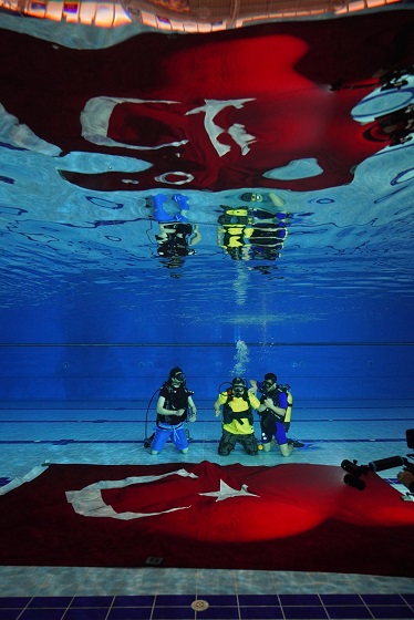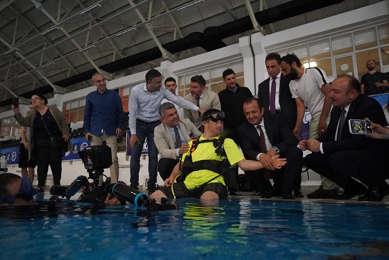 Gebze Olimpik Yüzme Havuzunda düzenlenen program kapsamında engelli sporcular su altında dalış yaptı ve havuzdan çıkarken Türk Bayrağı açtı. Havuzda dalış yapan engellilerin heyecanı ve mutluluğu görülmeye değerdi. Başkan Vekili Çakmak, engelli sporcularla yakından ilgilendi ve havuza girerken yaşadıkları heyecanı onlarla paylaştı. Profesyonel dalgıçların eşlik ettiği engelli sporcular dalışı başarıyla gerçekleştirdi ve havuzun altında açtıkları bayrakla yüzeye çıktı.