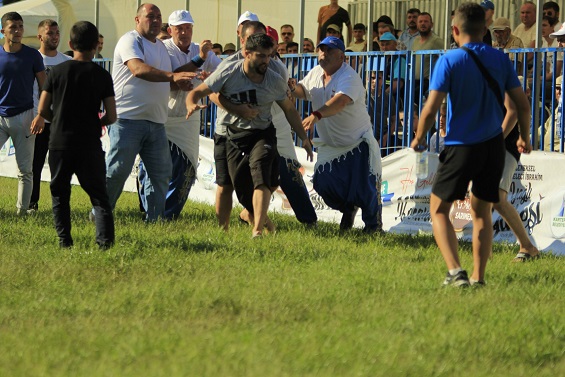 Bunun üzerine hakem bu kişiye tepki gösterdi. Karşılık gelince de ortalık bir anda karıştı. Sahaya Sezgin Yüksel indi ve şahsı oradan uzaklaştırmak istedi ancak bu şahıs Yüksel’e de bir şeyler söyledi ve Sezgin Yüksel çileden çıktı. 2-3 yumruk darbesi alan şahıs küfür etti ve şahsın yakınları da alana girince polis ekipleri olayları müdahale etmek zorunda kaldı.