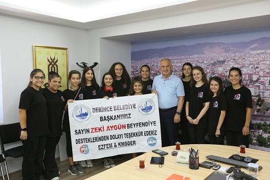 22-24 Temmuz tarihleri arasında Gaziantep’in Şahinbey ilçesinde düzenlenen Türkiye Halk Oyunları Federasyonu Gençler Türkiye Şampiyonası'nda kentimizi başarıyla temsil eden Kocaeli Ezgim Folklor Eğitim Merkezi Gençlik ve Spor Kulübü Derneği mensupları, Derince Belediye Başkanı Zeki Aygün ve Başkan Yardımcısı Kemal Bayraktar’a desteklerinden dolayı teşekkür ziyareti gerçekleştirdi. Organizasyonda kentimizi başarıyla temsil eden folklorcuları kutlayan Başkan Aygün, “Folklor ekibimizin yarışmalarda elde ettiği başarıları görmek bizleri mutlu ediyor. Kendilerini kutluyor, bundan sonraki çalışmalarında kolaylıklar diliyorum” dedi.