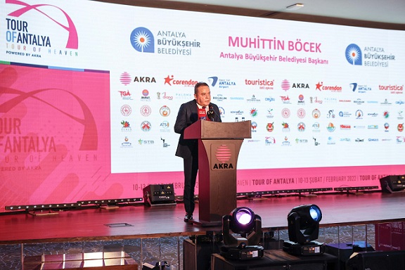 Uluslararası Bisiklet Birliği’nin 2.1 kategori yarışlarından biri olan ve küresel bisiklet ekosisteminin en önemli profesyonel yol bisikleti yarışlarından biri haline gelen Tour of Antalya 10-13 Şubat 2022 tarihleri arasında gerçekleştirilecek. Dünyanın saygın bisiklet takımlarına dört gün boyunca ev sahipliği yapacak ve Antalya’nın tanıtımına büyük katkı sağlayacak bu dev organizasyonun tanıtımı, Antalya Valisi Ersin Yazıcı, Antalya Büyükşehir Belediye Başkanı Muhittin Böcek, Türkiye Bisiklet Federasyonu Başkanı Emin Müftüoğlu, kamu kurumlarının ve sponsor markaların temsilcilerinin yanı sıra medya mensuplarının katılımı ile AKRA Hotel’de düzenlendi.