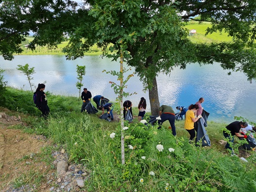 Çevre gönüllüleri gölet etrafındaki çöpleri titizlikle çöplerden arındırdı.
