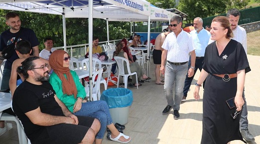 İzmit Belediye Başkanı Av. Fatma Kaplan Hürriyet de çocukların ve ailelerin yoğun ilgisiyle karşılaşan İzmit Belediyesi Aquapark’ı ziyaret etti. Vatandaşlarla da sohbet eden Başkan Hürriyet, yaz günlerini İzmit Belediyesi Aquaparkı’nda geçiren vatandaşlara bol keyifler diledi.
