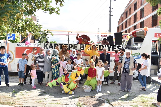 Hazırlanan Kurban Bayramı otobüsü ile ilçe genelinde çocukların bayramı kutlandı. Kutlama sırasında paylaçolar ve masal kahramanları eşliğinde çocuklar eğlenirken, dondurma, balon, şeker ve çikolatadan oluşan paketler bayram hediyesi olarak dağıtıldı. İlçe genelinde otobüs turunda Kartepeli minikler müzikler eşliğinde doyasıya eğlendi.