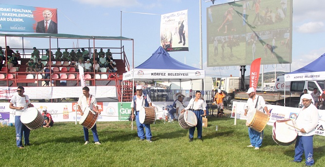 Davulcular bir dakika bile durmadı ve güreşlere enerji kattı.