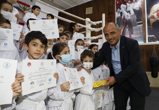 Körfez Belediyesi Gençlerbirliği Spor Kulübü'nde Karate ve Taekwondo eğitimi gören ve kuşak terfi sınavında başarılı olan öğrencilere yeni kuşak ve sertifikaları takdim edilirken, Kick Boks’ta düzenlenen yarışmalarda başarı elde eden sporculara da madalyaları verildi. Programa Körfez Belediye Başkanı Şener Söğüt, Başkan Yardımcısı Osman Yurt, birim müdürleri, sporcular ve aileler katılım sağladı.