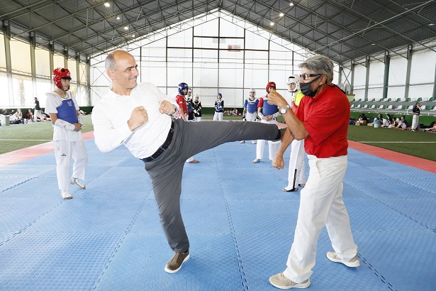 Yarımca Sahili’nde bulunan Spor Akademisi’nde gerçekleşen antrenman çalışmalarına katılan ve sporcularla uzun uzun sohbet eden Başkan Söğüt, Körfez Uzak Doğu Sporları İhtisas Kulübü Başkanı Aşkın Kahveci’yle de bir araya geldi. Başkan Söğüt ve duayen sporcu Aşkın Kahveci, başlangıç vuruşunu birlikte gerçekleştirdi.