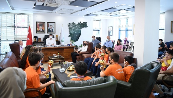 Kartepe Belediye Başkanı Av.M.Mustafa Kocaman, Denizli’de gerçekleşen karate turnuvasında göğsümüzü kabartan eden sporcuları makamında misafir etti.