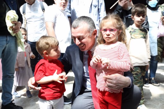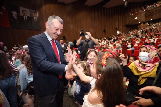 Başkan Doç. Dr. Tahir Büyakakın, konserin ardından bu defa KKM Fuayesindeki çocuklarla bir araya geldi. Çocukların mutlulukları ile son derece mutu olan Doç. Dr. Tahir Büyükakın, “Hepiniz 23 Nisan Ulusal Egemenlik ve Çocuk Bayramı için düzenlediğimiz Bi’Dünya Eğlence etkinliklerimize hoş geldiniz. İki yıl süren pandemi döneminin ardından 23 Nisan coşkusunu bizler de sizlerle birlikte yaşıyoruz. Hepinizi çok seviyorum çocuklarım. Mustafa Kemal Atatürk’ün sizlere armağan ettiği 23 Nisan bayramınız kutlu olsun” dedi. Başkan Doç. Dr. Tahir Büyükakın, çocuklarını 23 Nisan etkinliklerine getiren ailelere de teşekkür ederek, velilerin bayramını kutladı.