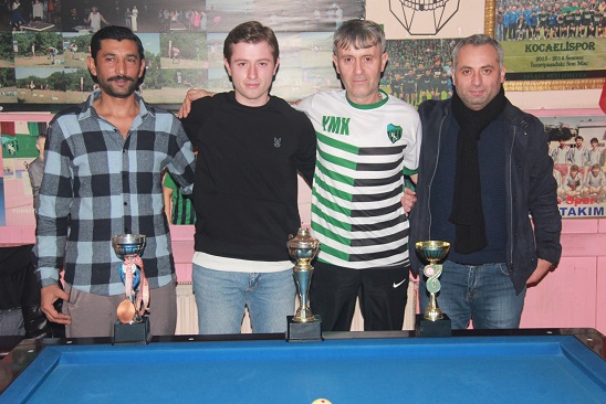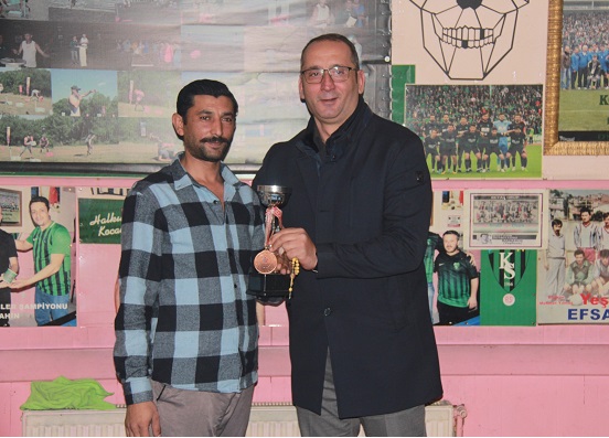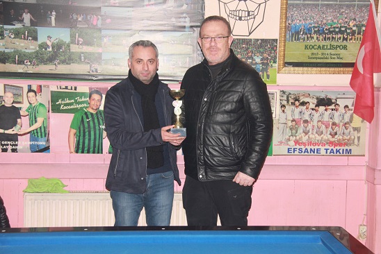 üçüncülerden İsa Altay’a iödülünü Magic Bilardo sahibi Hüseyin Kanpara verdi.