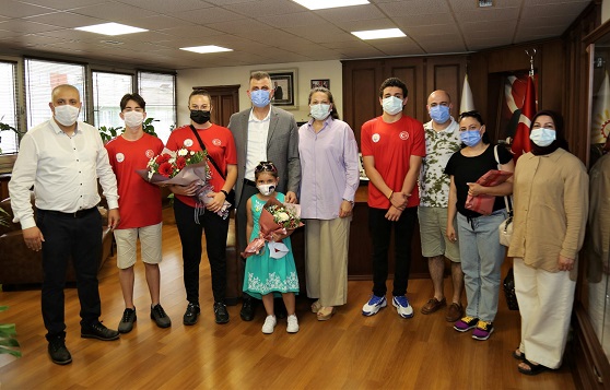 Gölcük Belediyespor’un ülke barajını aşan başarılı sporcuları yeni sezon yarışları için hazırlıklarına başladı. Gölcük Belediyespor Yüzme Kulübü Başantrenörü Kadir Doğan nezdinde çalışan yüzme takımı, Gölcük Belediye Başkanı Ali Yıldırım Sezer’i makamında ziyaret edip, çalışmalar hakkında bilgi verdi.
