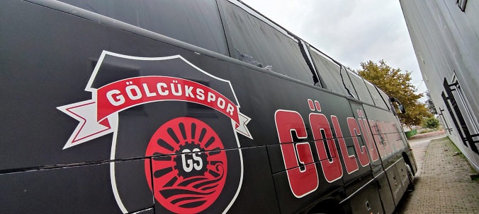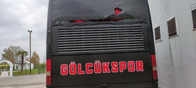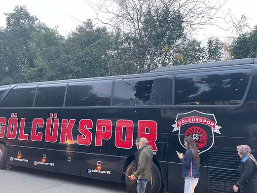 Olaylar bununla da bitmedi. Gölcükspor kafilesini taşıyan otobüs hazımsız vandallar tarafından taşlandı ve otobüsün camları kırılırken otobüste maddi hasar meydana geldi. O an otobüste kimsenin olmaması şans olarak değerlendirildi. Ekip otosuna yakın yerde konuşlanan ve yakın mesafeden otobüsün taşlanmasına engel olamayan emniyet mensupları ise olaylar karşısında yetersiz kaldı.