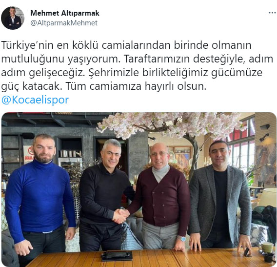 Kocaelispor’un yeni teknik direktörü Mehmet Altıparmak, Twetter’deki hesabından duygularını paylaştı.