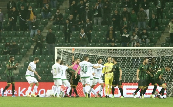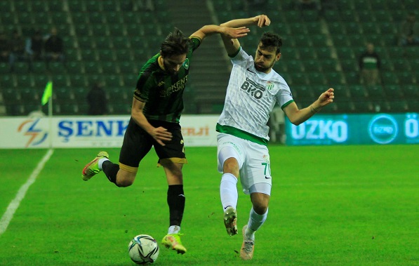 Kocaelispor, Bursaspor'a fazla bir pozisyon imkanı vermedi. Takım savunmasının diri, oyuncular arasındaki mesafelerin sağlıklı olması ve rakibin de 30. dakika itibari ile 10 kişi kalması, Bursa'nın sınırlı olan ofans hattını daha da verimsiz hale getirdi. Penaltıdan kalesinde golü gören Korcan kenar toplarda hata yapmadı, rakibin iki cılız şutunda da olması gereken yerdeydi.