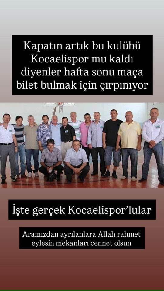 Kocaelispor’un en zor dönemlerinde, kapatılıyor denildiği ortamda eski futbolcu arkadaşları ile birlikte kulübü sahiplenen ve camiayı kapanmaktan kurtaran Orhan Görsen yaptığı paylaşım ile göndermede bulundu. Görsen -Kapatın artık bu kulübü Kocaelispor mu kaldı- diyenler hafta sonu maça bilet bulmak için çırpınıyor. İşte gerçek Kocaelisporlular. Aramızdan ayrılanlara Allah rahmet eylesin, mekanları cennet olsun- ifadelerinin yer aldığı fotoğrafa “Bu fotoğraf tüm Kocaeli’nin aklından çıkmamalı, ne zorluklarla Kocaelispor bayrağını yere düşürmediğimizi bilmeliler” dedi.