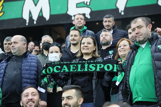 İzmit Belediye Başkanı Av. Fatma Kaplan Hürriyet, en büyük destekçisi olduğu Kocaelispor'un Bursaspor’u 2-1 yendiği karşılaşmasını Kocaeli Stadyumu’nda her zaman olduğu gibi maraton tribününden heyecanla takip etti.