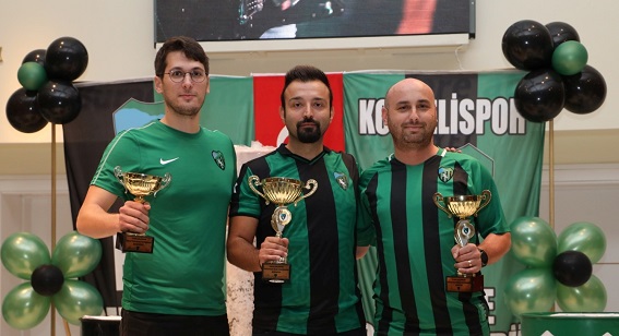 Finale Kocaelispor’un efsane isimleri de katılarak dereceye girenlere ödüllerini takdim etti. Programa Kocaelispor’un efsane futbolcuları Osman Çakır ve Engin Öztonga’nın yanı sıra CHP İzmit İlçe Kadın Kolları Başkanı Mediha Satıcı, İzmit Belediyesi Esnaf ve STK Masası Koordinatörü Cem Serhat Dayanç, Kocaelispor’da uzun yıllar yöneticilik yapmış isimler ve çok sayıda Kocaelispor taraftarı katıldı.