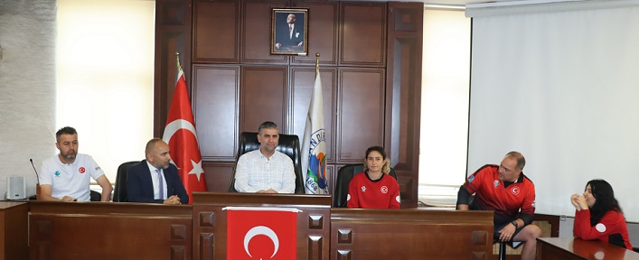 Hırvatistan’ın başkenti Zagreb’te gerçekleşen 7’li Kadınlar Tropy Müsabakaları öncesi Kandıra’da kamp yapan 7’Lİ Ragbi Kadın Milli Takımı sporcuları, Ragbi Teknik Kurul Başkan Vekili Bayram Meşe, Milli Takım Teknik Direktörü Jauan Gonzales, Milli Takım Antrenörü Adem Hacı Fettahoğlu, Kandıra Belediye Başkanı Adnan Turan’a nezaket ziyaretinde bulundu. Belediye Meclis Toplantı Salonu’nda gerçekleşen buluşma yaklaşık bir saat sürdü.