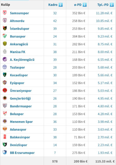 TFF 1. Lig’de güncel kadrolar ve güncel Transfermarkt verileriyle 2021-2022 sezonu 1. Lig ekiplerinin kadro sayıları ve değerleri açıklandı.
