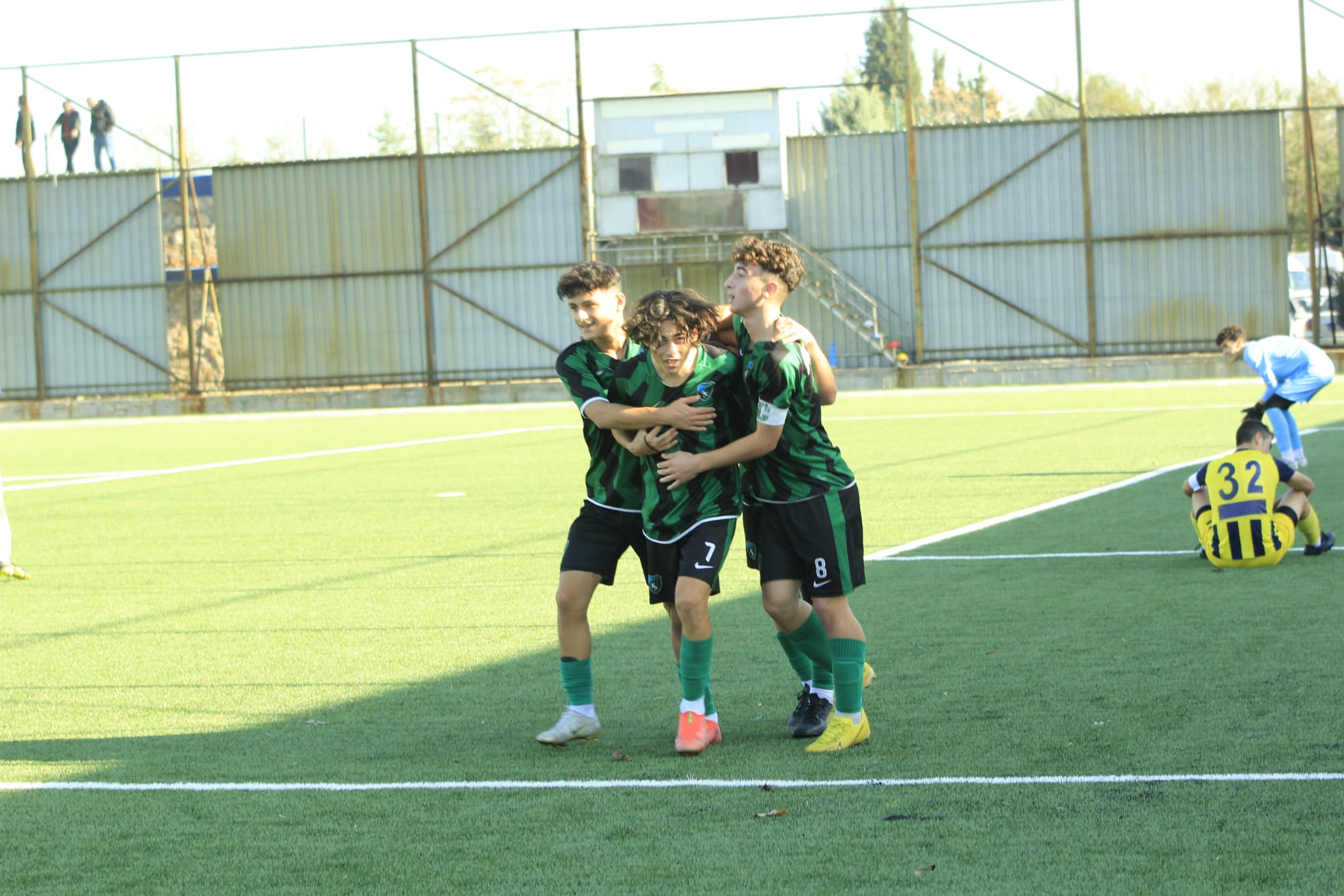 Kocaelispor U-17 Akademi takımı Menemenspor’u konuk etti. Vinsan Tesisleri’nde oynanan maçın başından sonuna kadar etkili bir futbol ortaya koyan yeşil siyahlılar mücadeleyi 4-0 kazandı. Gençlerimizde galibiyeti getiren golleri 38 ve 40. dakikalarda Yağız Akkuş, 60’da Muharrem ve 65’te de Kaan attı. Bu galibiyetle birlikte 8 maç sonunda puanını 19’a çıkaran yeşil siyahlılar liderliğini sürdürdü.