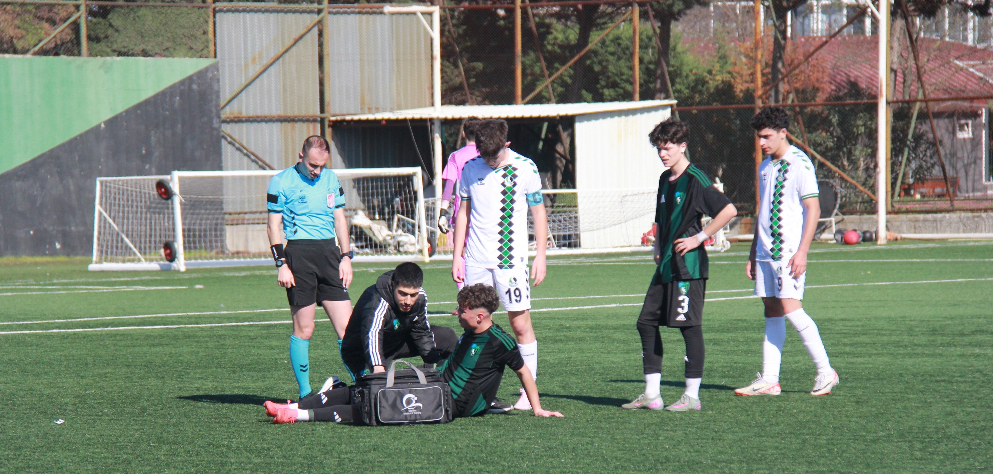 Mücadelenin ikinci yarısında yaşanan bir pozisyonda Kocaelispor’un başarılı orta saha oyuncusu Alp Eren Efe sakatlık geçirdi ve bir süre yerden kalkamadı. Takımın genç ve yetenekli masörü Kaan Tosun Kocaelisporlu futbolcunun tedavisini sahada yaptı ve Alp Eren yerden doğrulurken kendisine çok anlamlı bir el uzatıldı.