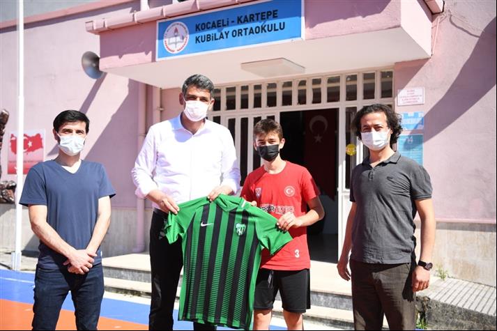 Covid-19 tedbirlerine dikkat edilerek gerçekleşen ziyarette Başkan Kocaman “Gençlerimizin başarılı olmaları için imkanlarımız dahilinde bütün desteği veriyoruz. Geleceğimiz olan gençlerimizi en iyi şekilde hayata hazırlamak bizlerin asli görevidir. Kartepemizin milli gururları, genç kardeşlerimizi Kartepe İlçe Spor Müdürümüz Erol Arutan ile birlikte ziyaret ederek, 19 Mayıs Atatürk'ü Anma Gençlik ve Spor Bayramlarını kutladık. Genç Millilerimize gururla taşıyacakları Kocaelispor’umuzun formasını ve şanlı Türk Bayrağı’mızı hediye ettik. Şu anda Milli Takım kamplarında olan, ziyaret edemediğimiz kardeşlerimize de gönül dolusu sevgilerimi gönderiyorum, başarılar diliyorum” açıklamasında bulundu.
