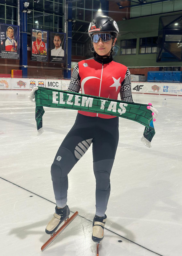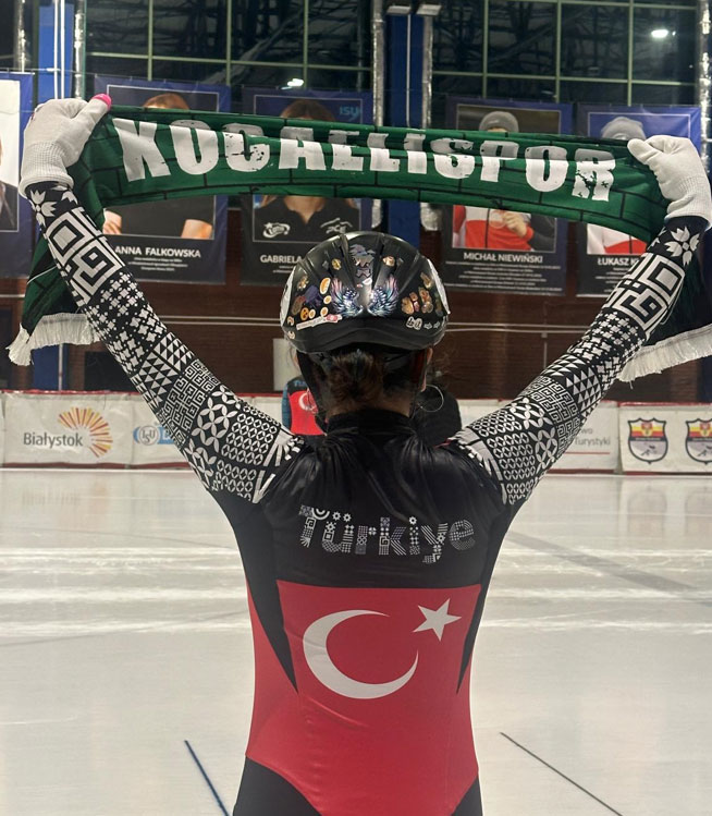 İlimizin ve ülkemizin başarılı sürat pateni sporcularından Elzem Taş, Polonya’daki yarışlar öncesi Kocaelispor atkısı açarak şehre selam gönderdi.