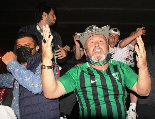 Pala Dayı olarak bilinen Yaşar Çelik otobüste şampiyonluğu doyasıya kutladı.