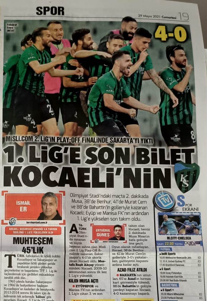 Tüm ülke Kocaelispor ile Sakaryaspor arasında oynanan 2. Lig Play-Off maçının skorunu günlerce merak etti. Kocaelispor mücadeleyi 4-0 kazanırken, Türkiye Kocaelispor’u alkışladı. Gazeteler bu maça geniş yer verirken, Sakarya basını üst üste 4 kez Play-Off’tan elenen Sakaryaspor’u eleştirdi.