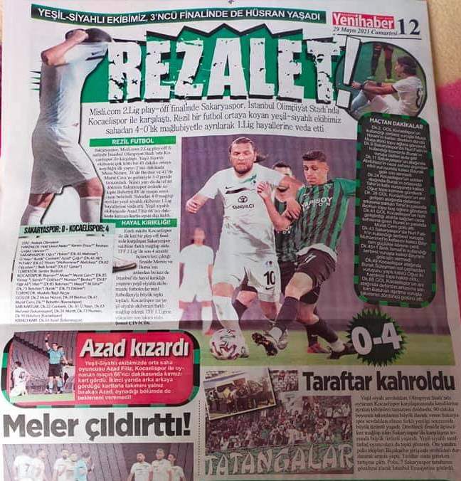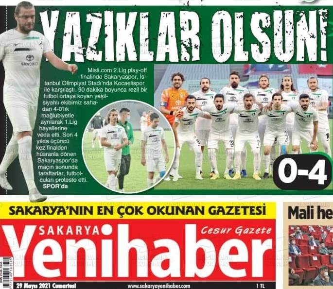 Yeni Haber Gazetesi haberi “Yazıklar olsun… Rezalet” başlığı ile görürken, Yeni Sakarya Gazetesi “Play-Off laneti” başlığını attı. Bizim Sakarya Gazetesi’nin “Bu lige çakıldık” dediği maç haberi ile ilgili tüm ulusal gazeteler Kocaelispor’un haklı bir galibiyet ve şampiyonluk elde ettiğini belirtti.