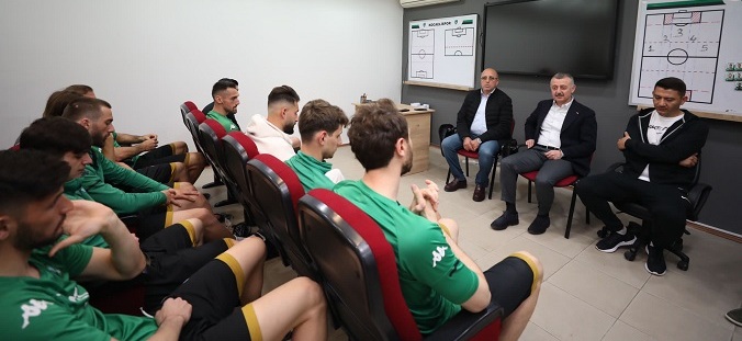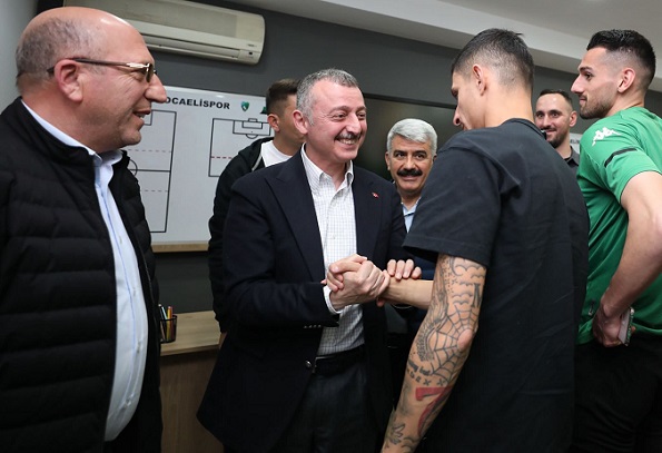 Kocaelispor Kulübü Başkanı Engin Koyun’un karşıladığı Büyükakın tesislerin toplantı salonunda yönetim, teknik kadro ve futbolcularla sohbet etti. Kocaeli Üniversitesi Rektörü Prof. Dr. Sadettin Hülagü’nün de eşlik ettiği Büyükakın konuşmasında takıma rekor prim vaadinde de bulundu ve Başkan Büyükakın yeşil siyahlıların ligde kalması halinde takıma 5 milyon lira prim vereceğini ilan etti.