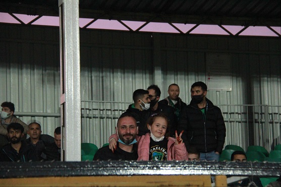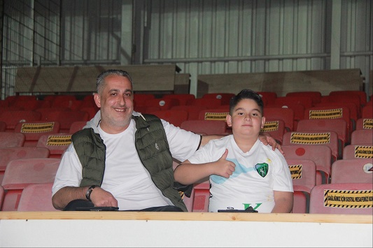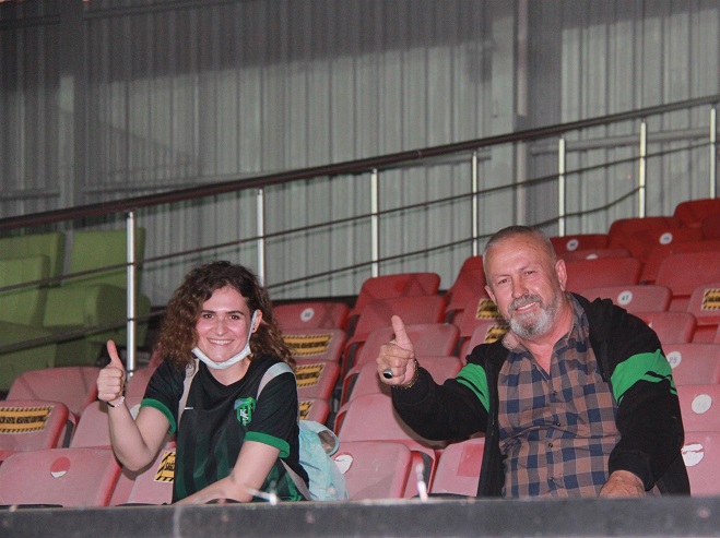 Taraftarlardan İbrahim Karakuş desteğe kızı ile birlikte geldi.