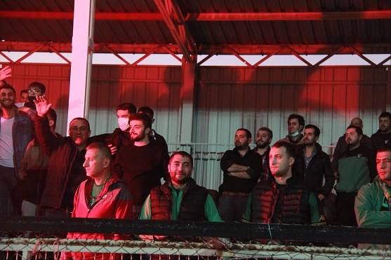 Kocaelispor Körfez Brunga Tesisleri’nde takımın çalışmasını izleyen 12. adam antrenman boyunca tezahüratta bulundu. Tüm takımı tek tek tribünlere davet eden ve futbolculara üçlü çektiren yeşil siyahlılar, Bursaspor maçı öncesi takıma moral verdi. Yaklaşık 200 kadar taraftar antrenmanın sonunda meşale yakarken ortaya muazzam bir manzara çıktı.